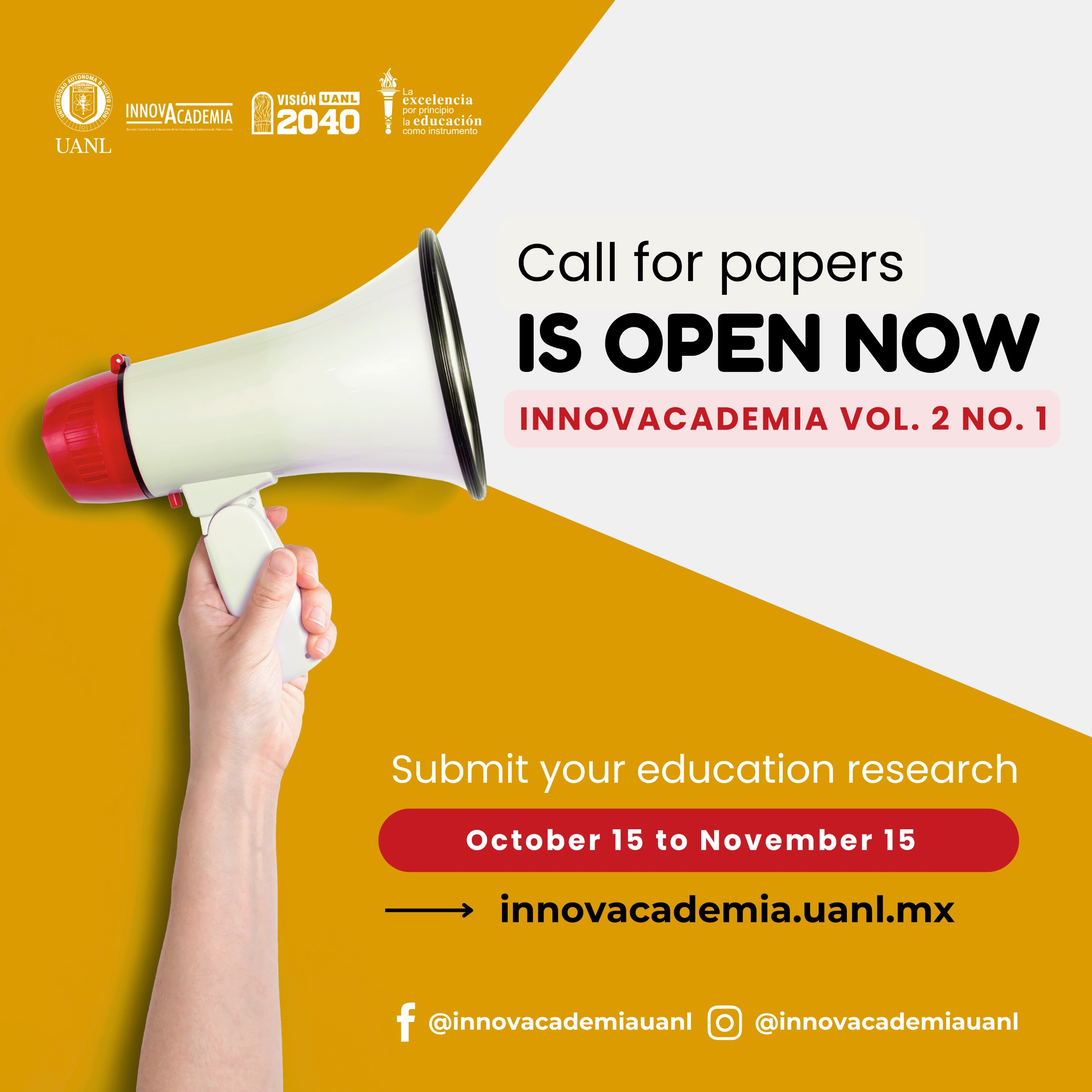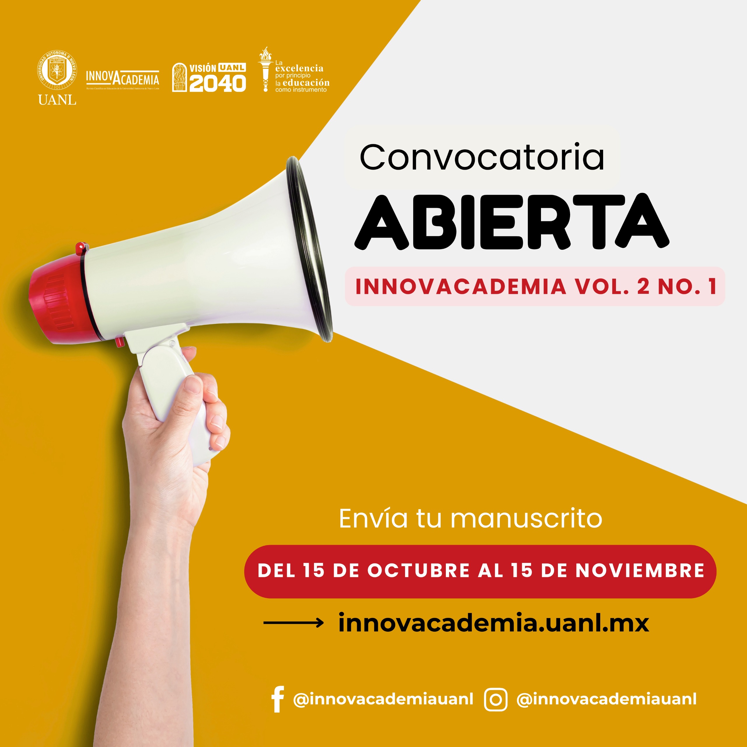 INNOVACADEMIA, Revista Científica en Educación de la Universidad Autónoma de Nuevo León, es una revista en open access con periodicidad cuatrimestral, editada y publicada por la Universidad Autónoma de Nuevo León a través de la Secretaría Académica. Domicilio de la publicación: Ave Universidad s/n, cd. Universitaria, San Nicolás de los Garza, Nuevo León, México, C.P. 66455. Teléfono +52 8183-29-4000. Correo electrónico: innovacademia@uanl.mx. Dirección web: https://innovacademia.uanl.mx/. Responsable de esta edición: Dra. Jessica Mariela Rodríguez Hernández. Reserva de Derechos al uso Exclusivo: 04-2024-08141102100-102. ISSN 3061-7952, ambos otorgados por el Instituto Nacional del Derecho de Autor.